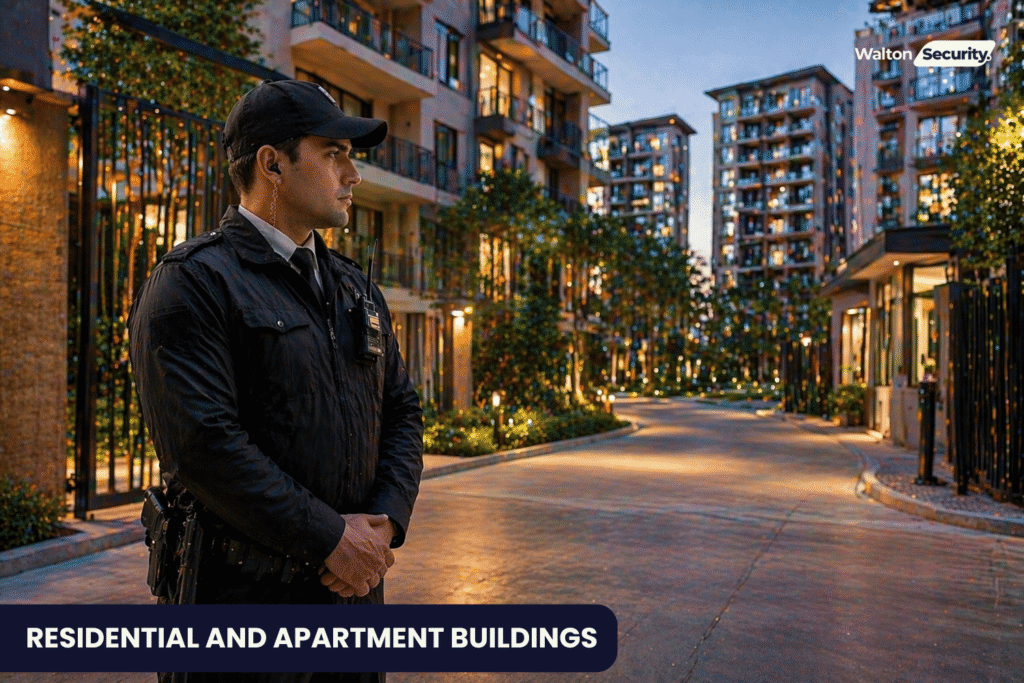 Residential and apartment security guards primarily focus on controlled access and maintaining the safety of shared spaces. These environments differ from retail and construction because the goal is not solely crime prevention. It is also comfort, routine, and peace of mind for residents.