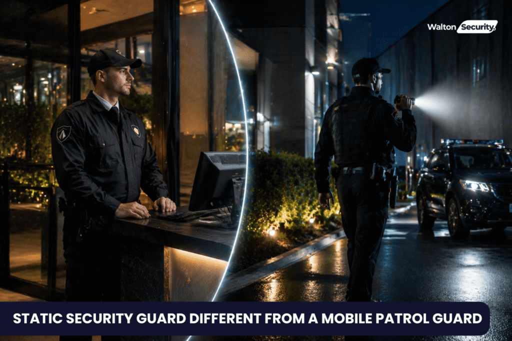 Walton Security provides fully licensed static guard services across metropolitan Melbourne and regional Melbourne with 24/7 operational support. Experienced guards receive comprehensive training and ongoing supervision ensuring consistent professional service. Technology integration including digital reporting, GPS tracking, and remote monitoring coordination delivers accountability and transparency. Contact Walton Security for tailored static guard solutions matching your site requirements.